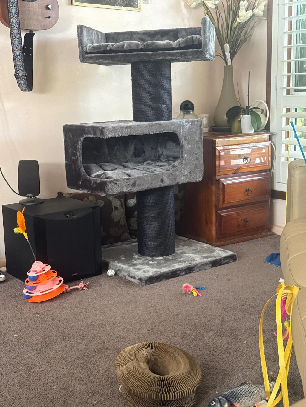 After buying countless cat trees that last four years at best, I decided to splurge and get something that would last. I’m so happy I did, because this is made with quality materials-soft, sturdy and cat friendly. Thank you for this product!