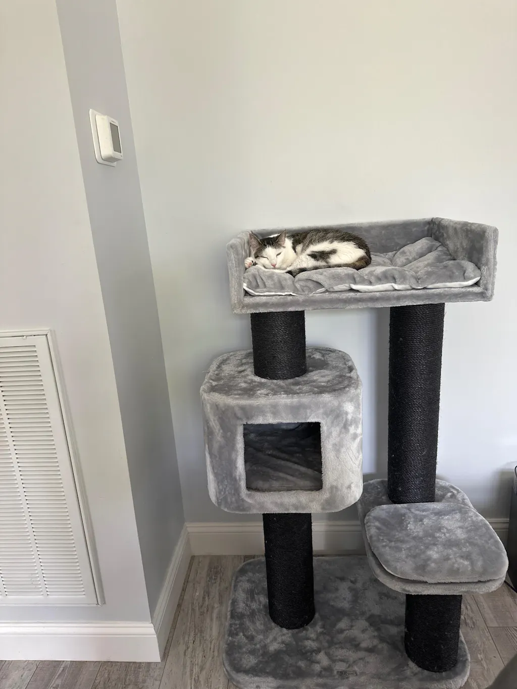 This lounger is exactly what I needed for my 2 fur babies to snuggle up, and wrestle, with each other without over crowding and one being launched over the edge accidentally. The platform is so spacious and comfy, they absolutely love it. Thank you Cat Tree King for another awesome product.