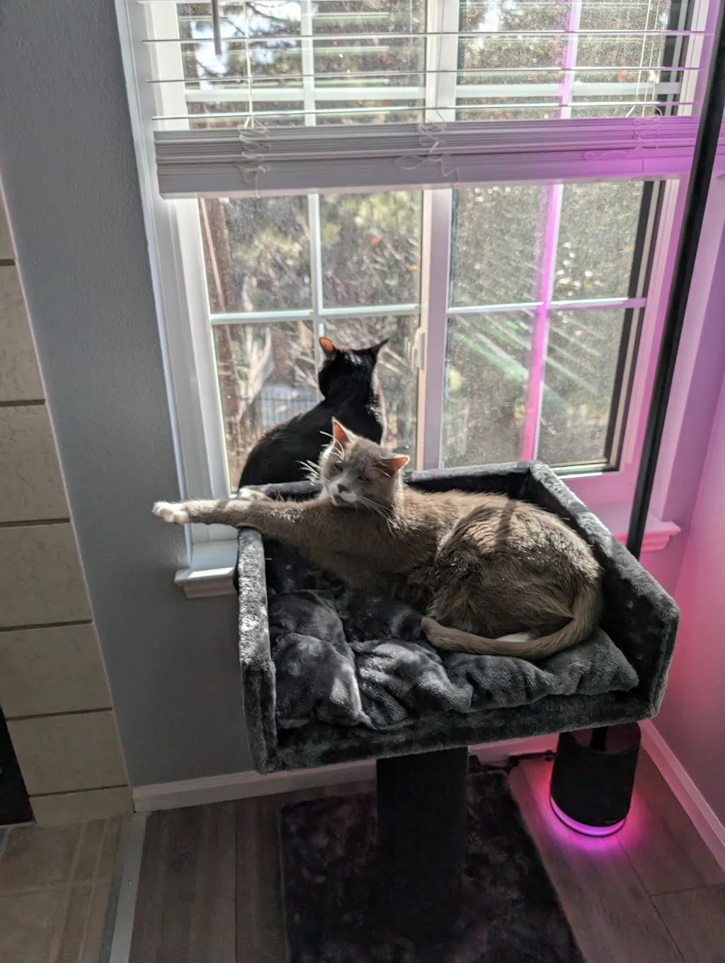 This lounger is exactly what I needed for my 2 fur babies to snuggle up, and wrestle, with each other without over crowding and one being launched over the edge accidentally. The platform is so spacious and comfy, they absolutely love it. Thank you Cat Tree King for another awesome product.