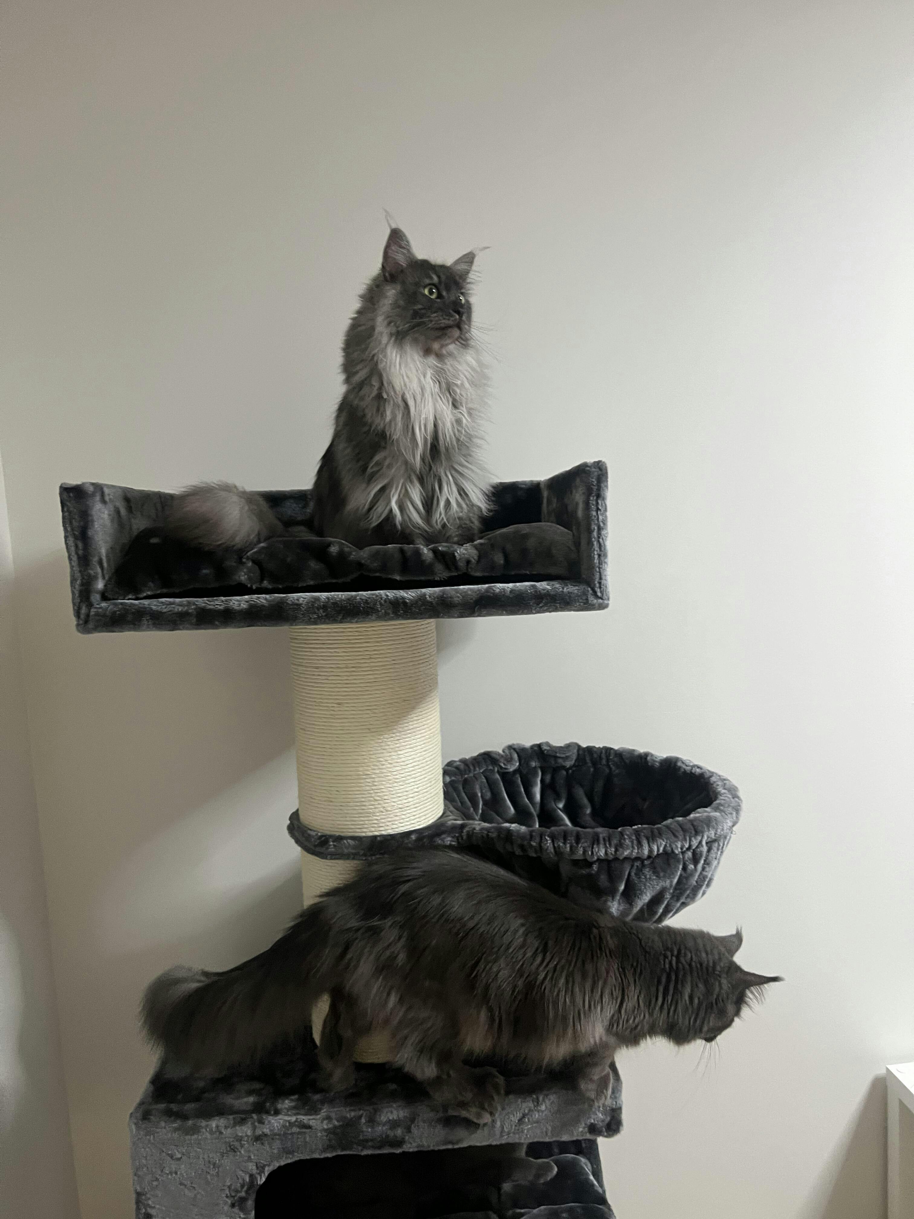 Purchased for my 10mo Ragdoll and his new play pal (a Mainecoon cross). This tree is definately big enough for the both of them to grow into!