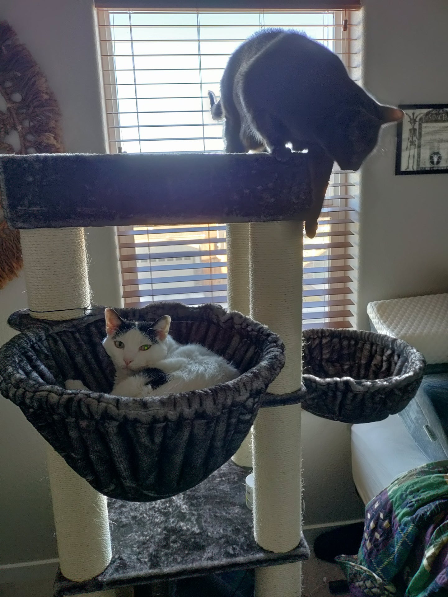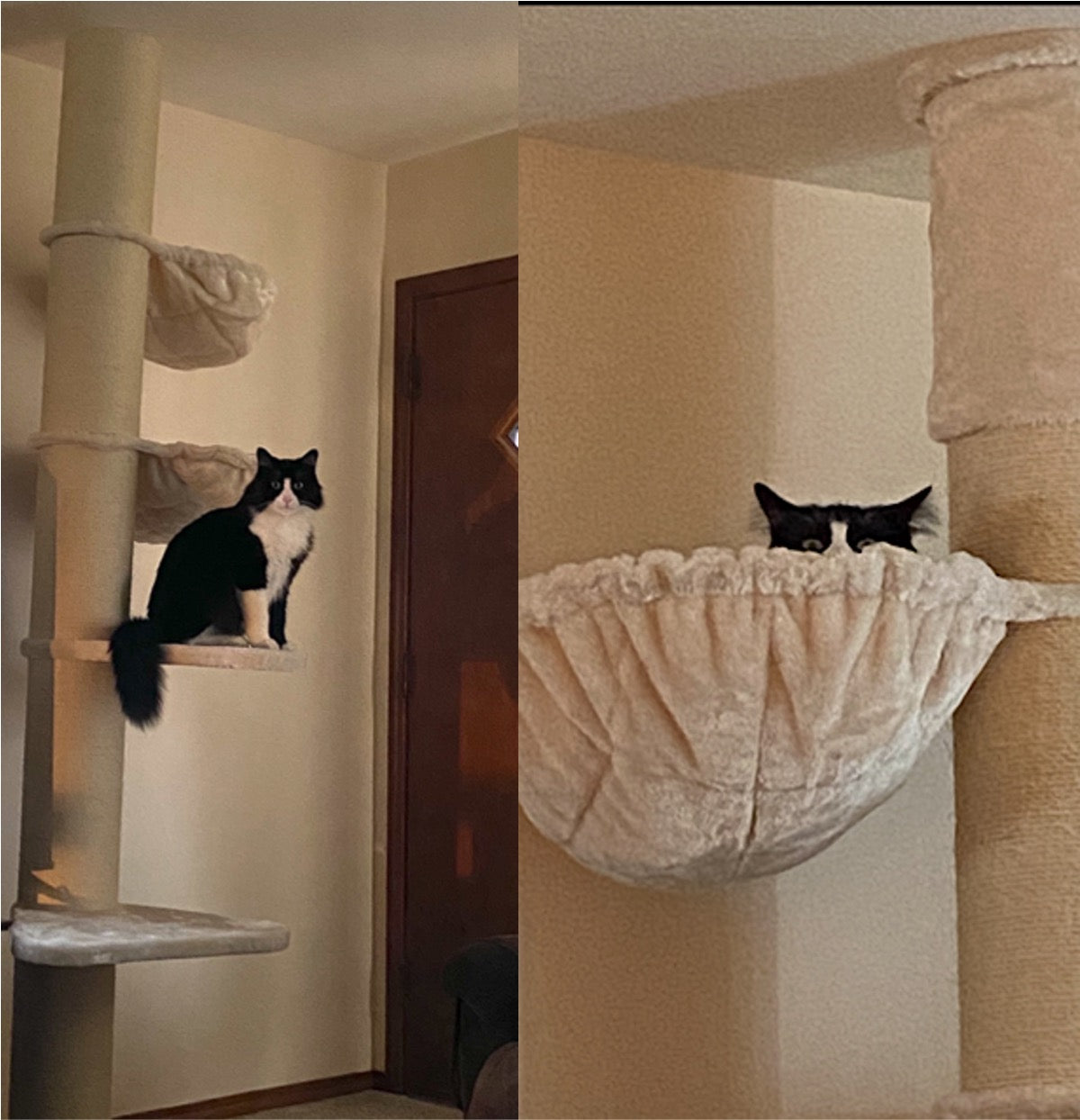 Exceeds all of my expectations! My cats were using it before I finished assembling it. The levels are perfectly staggered for them to navigate their way to the top level and baskets and then easily come back down. Even with all four of them on it at the same time, it’s solid as a rock. Best cat tree we have ever purchased!!