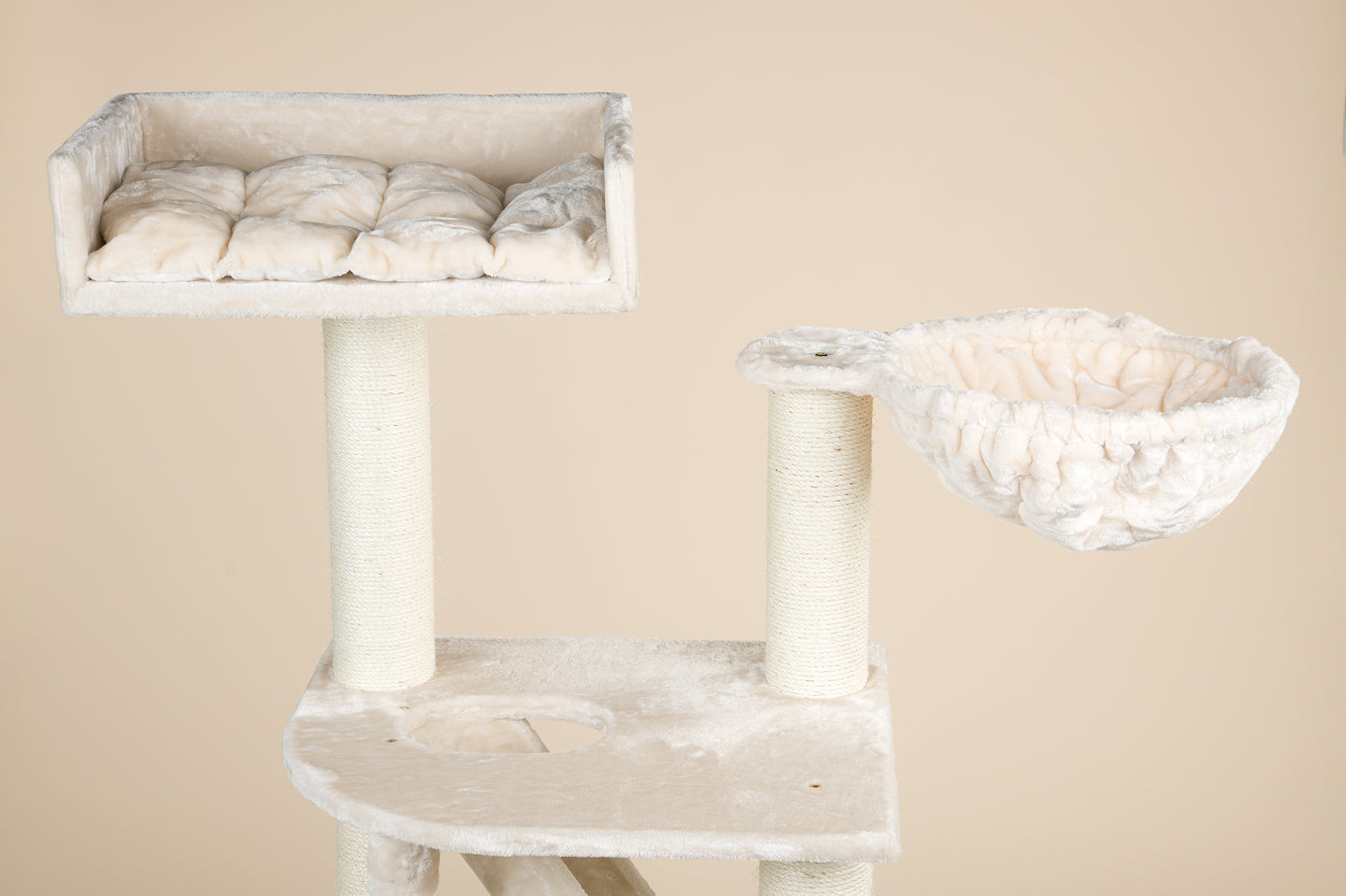 Heel mooie en stevige krabpaal. Onze 2 poezen hebben direct hun nieuwe slaapplaatjes ingenomen.