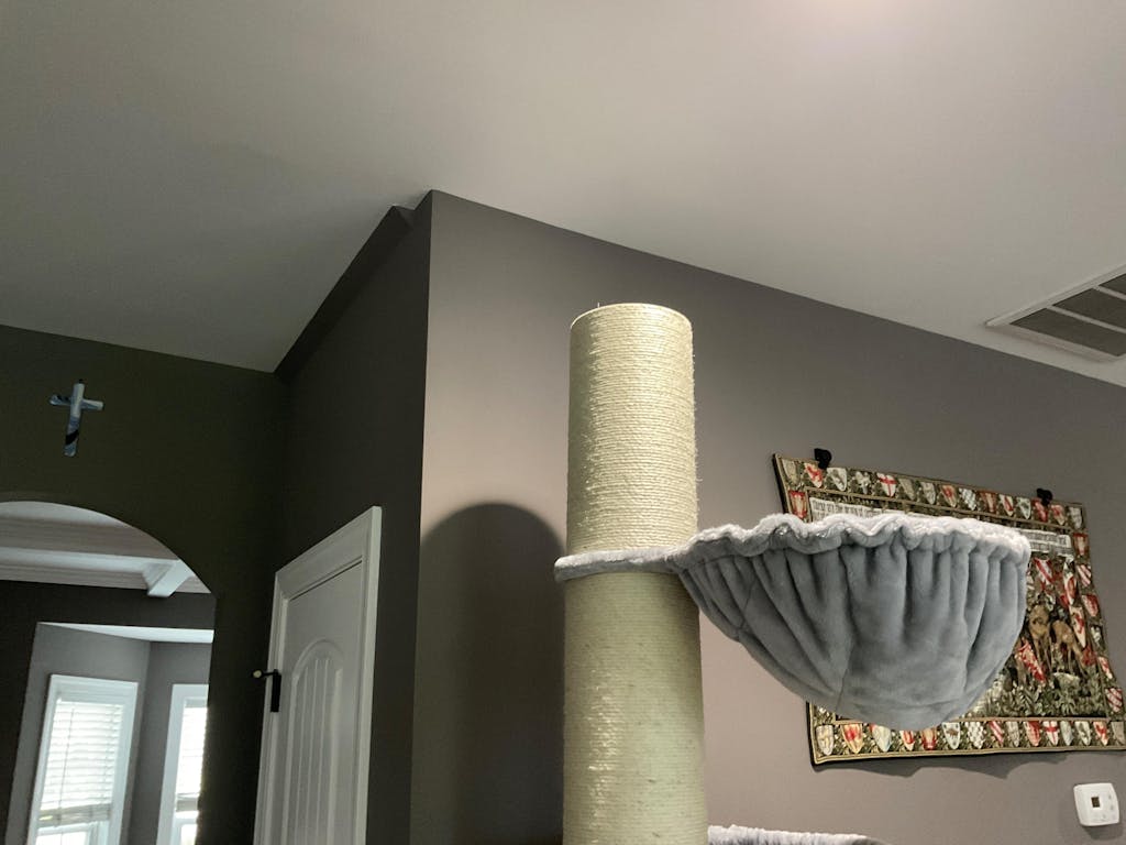 Com a nossa gata siamesa adora trepar e ir o mais alto possível, resolvi adquirir um novo Corner Coon e com os outros dois que já cá tinha, fazer somente 2 estruturas bem altas e personalizadas ao gosto da Nala e do nosso Tripé (que nasceu só com 3 patas e necessita de níveis adaptados ao seu andar).