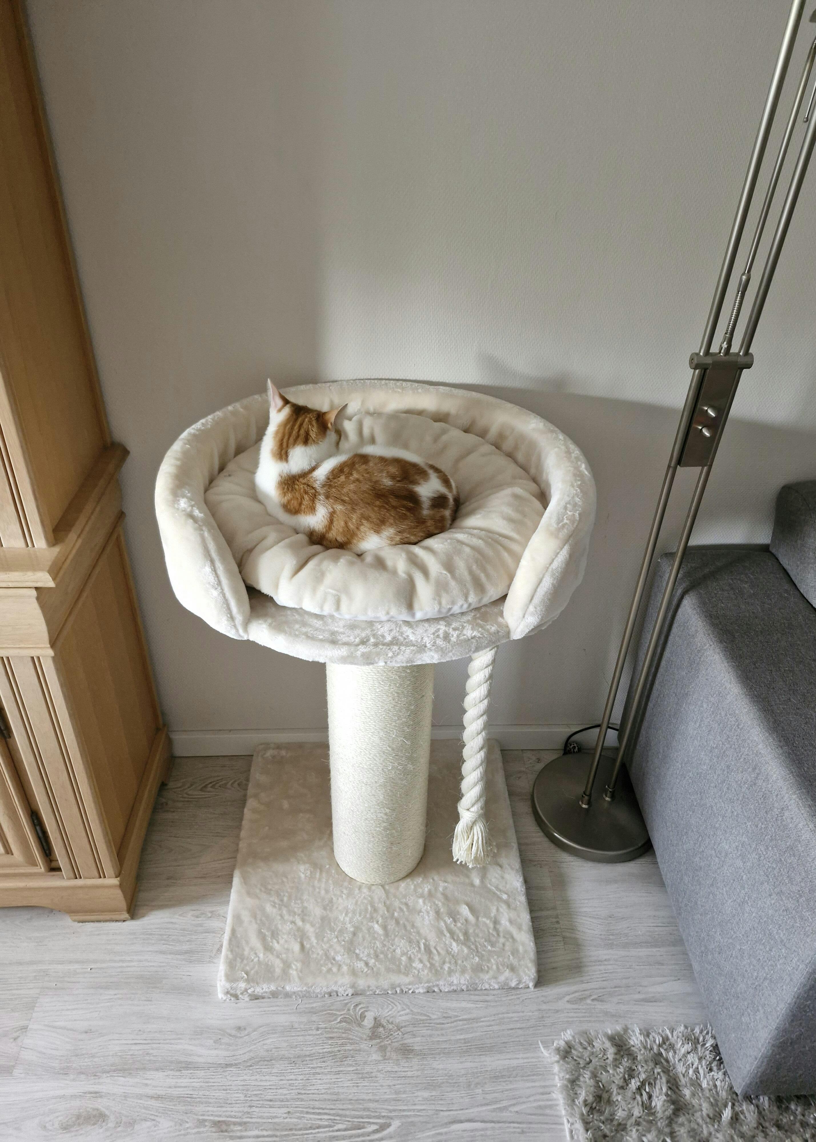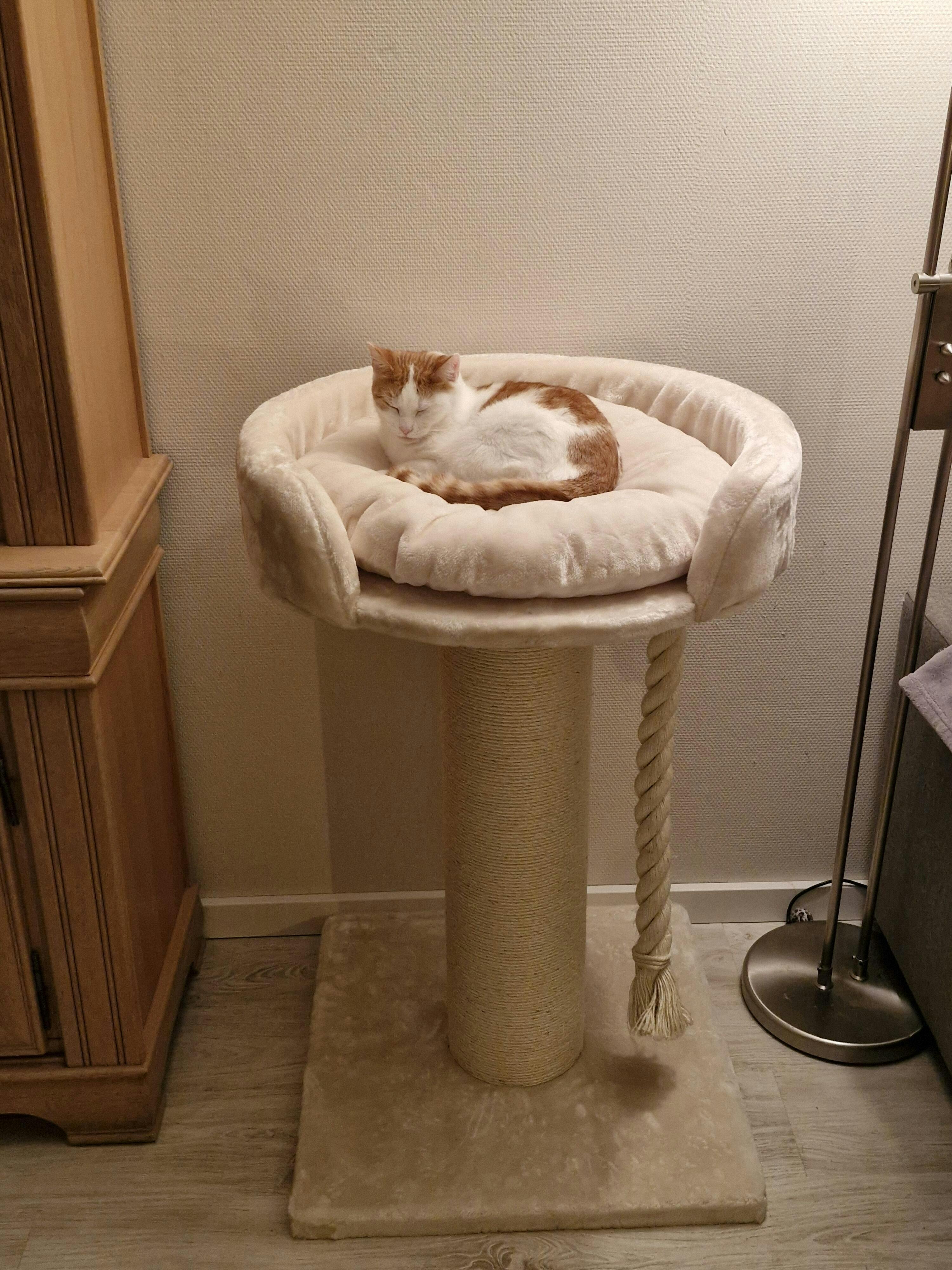 De paal is heel stabiel, ze kunnen er flink aan krabben en erop springen zonder dat de paal beweegt of verschuift