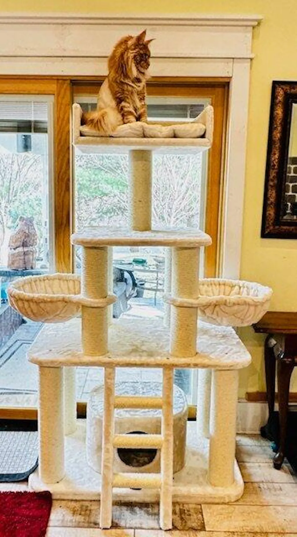 This is my third purchase from Cat tree king and they are the best Cat trees ever! This one is actually huge and it holds me up if I wanna sit on it with the cats. I can even climb the ladder to pet them at the top and it doesn’t budge. These are the best.
