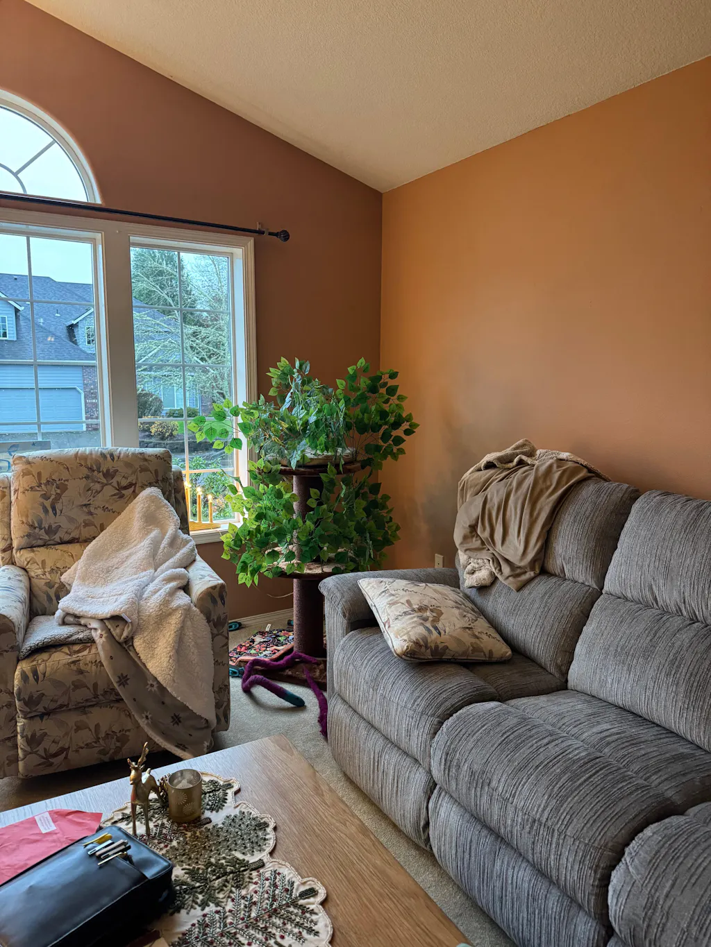 This looks nice in my new updated room. Neo is part Maine Coon and had stopped using his old taller condo. He didn’t seem to have the need to climb high. He’s a big boy. And aesthetically I like this a lot. It’s like adding a decorative tree in your room. It has taken a lot for him to decide to use it. I’ve had to entice him to use it. I added an old scratching pad on the top and he seems to be happy with that. The carved out step idea isn’t to helpful to him. He prefers to jump through the leaves onto the top from the sofa. I haven’t had him use the scratching post yet but I’m hoping. Although the total length on the sisal scratch pole is tall it is not something he uses. I wonder if designing a tree like this with only a jump off and on landing to the top shelf. Exposing the entire height of the scratch pole. I also think the top perch should not have the cut out. I don’t see a bigger cat ever going down through the cut off when they can easily jump up and down from the floor. Since the cushion I added is square it covers up a small part of the indent curve.. A matching pad to scratch sitting on the top may be helpful. Like I said I added it hoping his scent would attract him. I also tried some spray catnip and feeding treats to get him to use it. I would buy again.