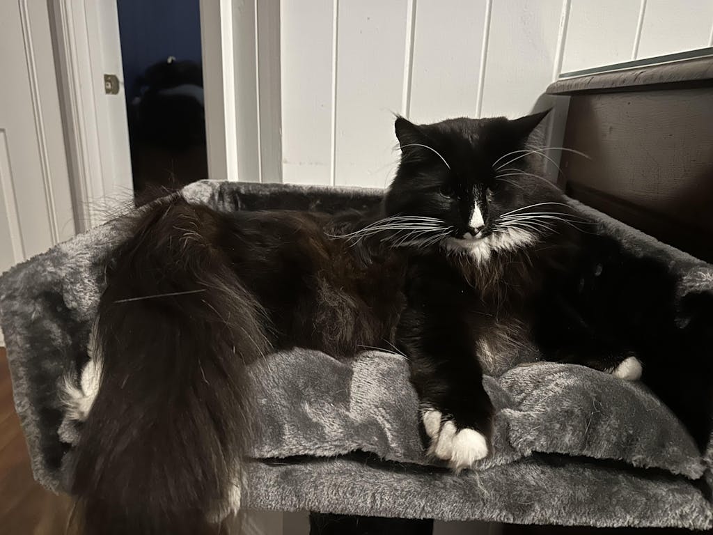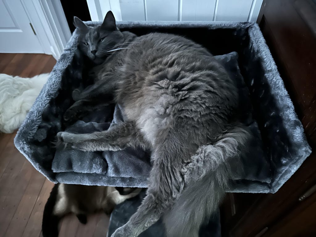 It’s large which is really nice but I think my cats are already to heavy for it.