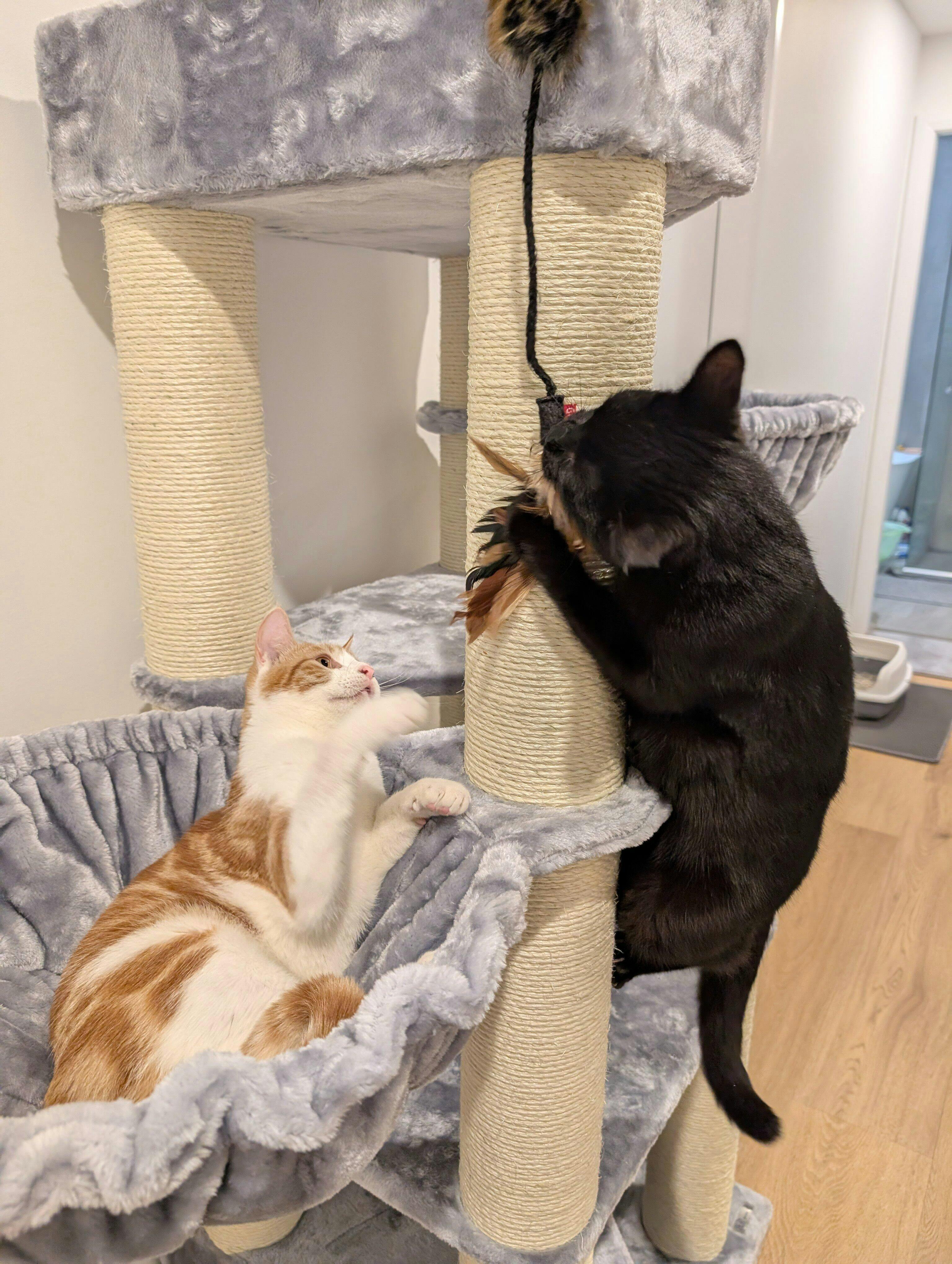 Love this cat basket is my 3rd one but this is the nicest so very well made just can’t attach to my cat tree at the moment the screw on one of the holes is not long enough so not sure how to fix the problem yet I may have to buy another scratching pole to attach it to