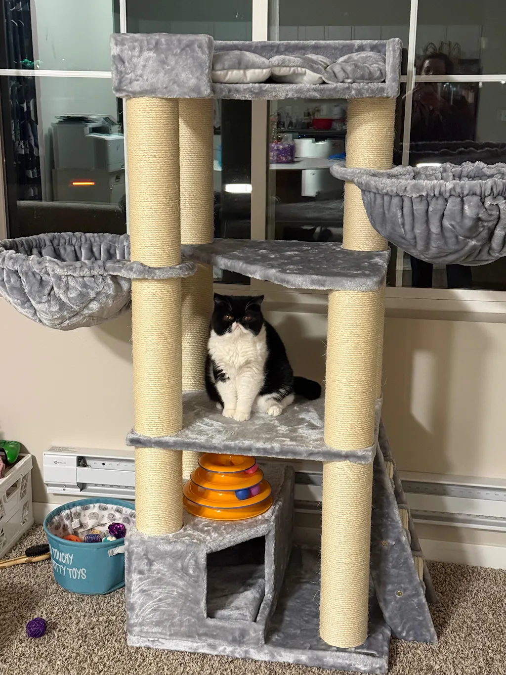 AMAZING! I am delighted with this cat tree and so are by two furbabies. Its great to be able have them both with a hammock and room to move. I am super happy with my purchase 💜