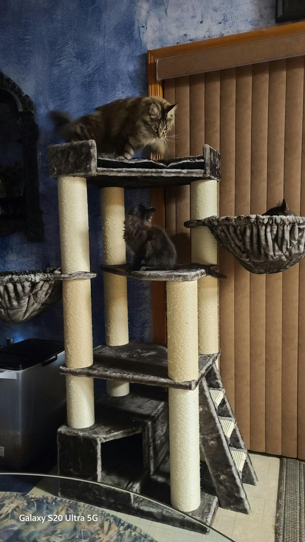 I have two of these now - one in grey and one in cappuccino and my cats love them! there is loads of room for them to grow into. They claw climb up the stratching post to scramble on top! I can watch them for hours playing and they’re so adorable when the sleep snuggled up. Definitely recommend - very strong structure does not tip. Beautifully made.