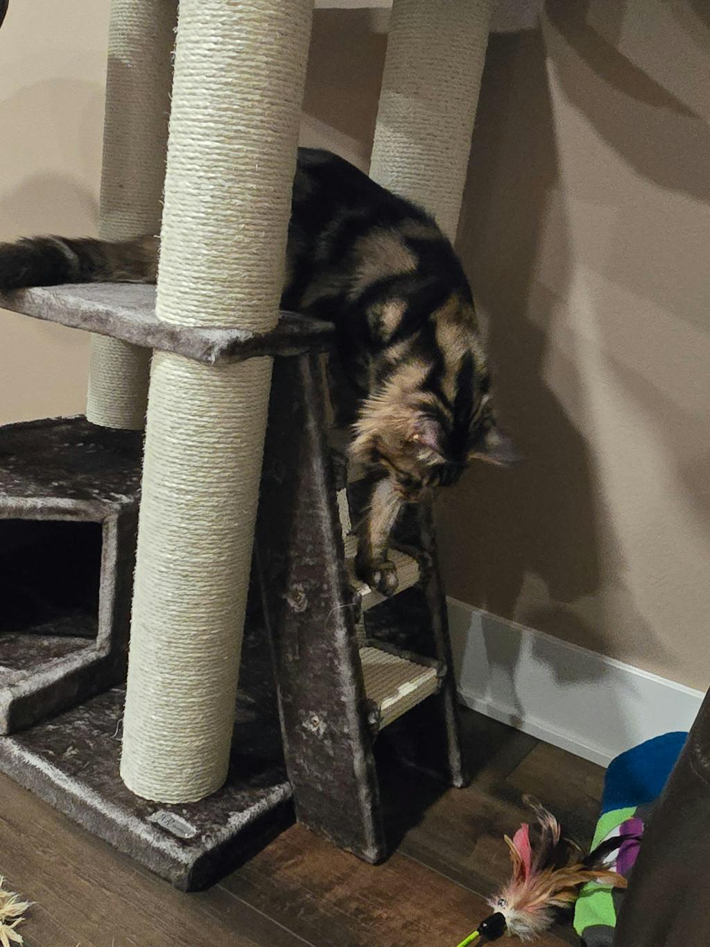 After a somewhat delayed delivery I am loving the tower and so is my beautiful ragdoll cat she has loads of room to play and sleep would highly recommend great value for money 😻
