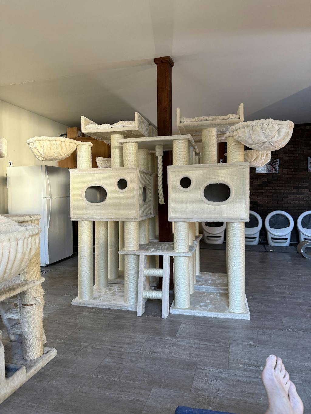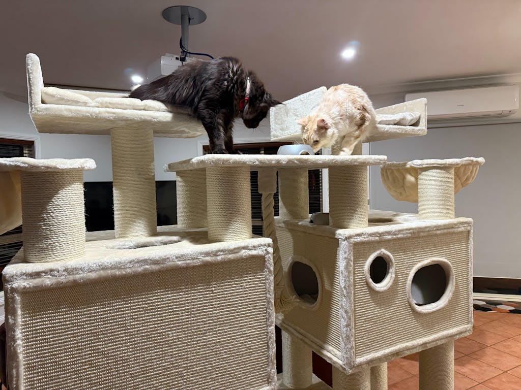I have two of these now - one in grey and one in cappuccino and my cats love them! there is loads of room for them to grow into. They claw climb up the stratching post to scramble on top! I can watch them for hours playing and they’re so adorable when the sleep snuggled up. Definitely recommend - very strong structure does not tip. Beautifully made.