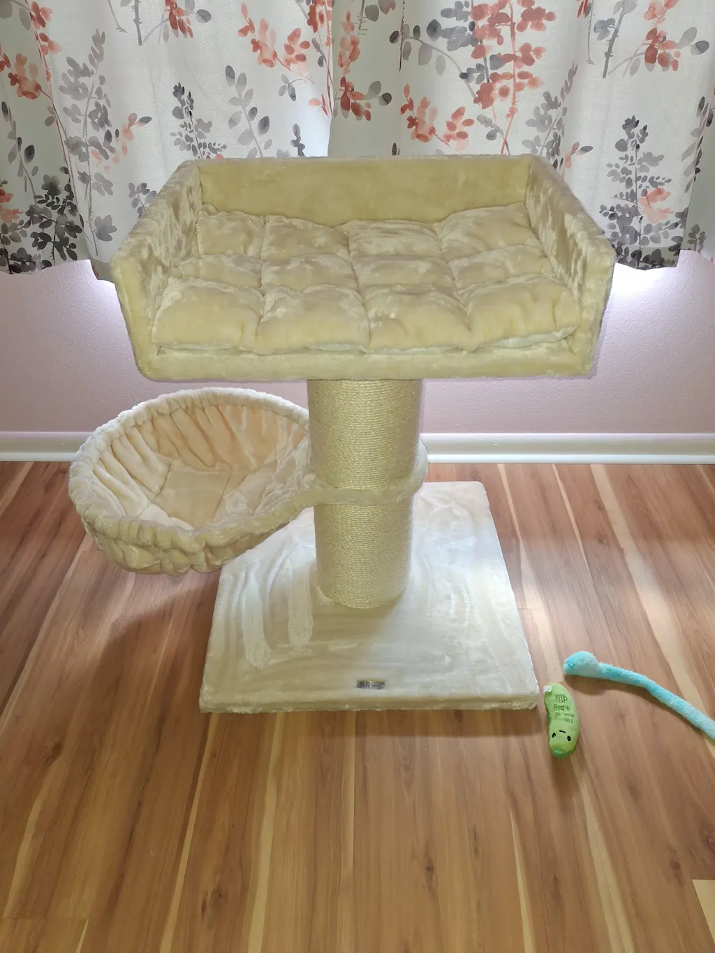 The 18 inch Hammock can easily support a weight of 44 lbs so your cat can play, rest or sleep there wonderfully. Besides as a resting place, they also serve as a step to get halfway up the scratching post